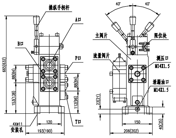 (括號(hào)內(nèi)尺寸25通徑,括號(hào)外尺寸32通徑)