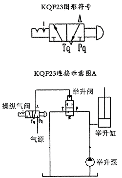 用途與特征: KQF23型操縱氣閥是手控?fù)Q向的氣動元件,以壓縮空氣為工作介質(zhì),是各種自卸汽車中氣路控制的一種先導(dǎo)操縱氣閥。 KQF23型操縱氣閥的原始位置Pq口與Tq口是封閉的,A口與Tq口相通。當(dāng)把操縱氣閥的手柄拉出后,Pq口與A口連通去控制舉升閥氣缸,使液壓系統(tǒng)進入工作狀態(tài)。當(dāng)把操縱氣閥的手柄推入后,切斷Pq口與A口的通路,舉升閥氣缸內(nèi)壓縮空氣由該閥排入大氣,使液壓系統(tǒng)卸荷。